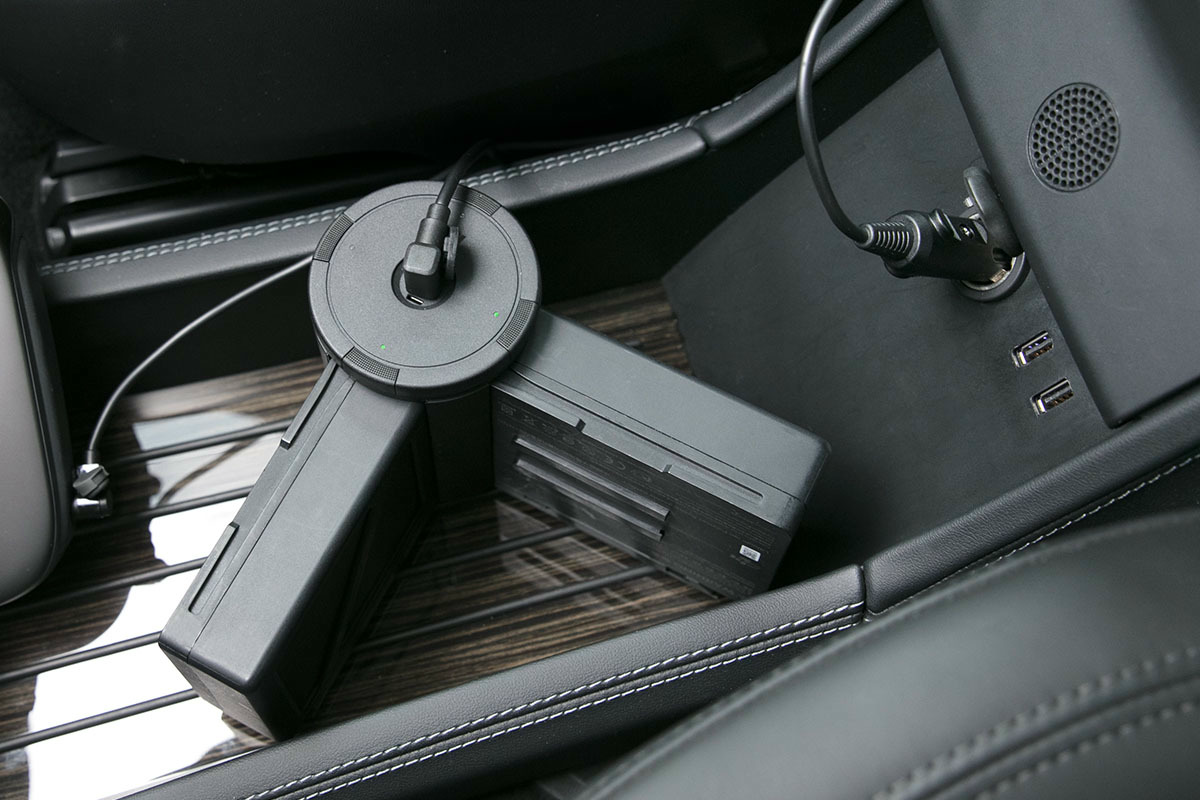 Автомобильное зарядное устройство предназначено для зарядки интеллектуальных аккумуляторных батарей и пульта дистанционного управления квадрокоптера Inspire 2 от автомобильной розетки прикуривателя.